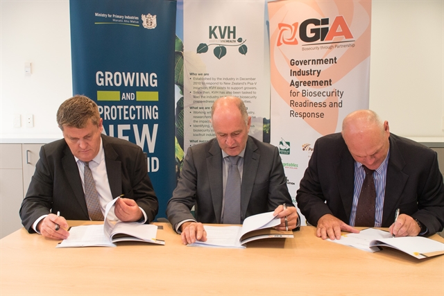 Kiwifruit Vine Health (KVH) Inc has signed an agreement with the Ministry for Primary Industries (MPI) to help reduce the damaging impacts of the four most common biosecurity threats to the kiwifruit and kiwiberry sectors.